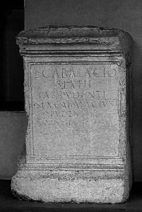 Ara funeraria su base modanata e conclusa in alto da una cornice pure modanata. Sul lato frontale l'iscrizione è inquadrata da una cornice modanata, che delimita la suoperficie anche sui fianchi. Il monumento presenta nella parte inferiore dei lati due protuberanze a profilo semicircolare che indicano l'inserimento dell'ara in un recinto funerario dotato di muretti con analogo profilo.