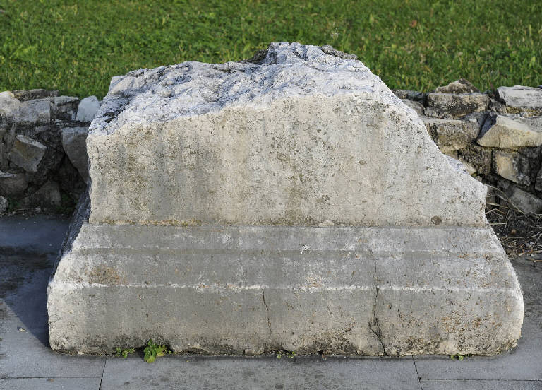 Base di ara modanata con, dal basso, plinto, gola rovescia e gola concava. Nella parte alta si conserva una porzione dell'ara parallelepipeda