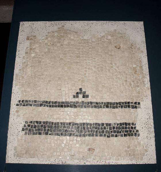 Frammento di mosaico con fondo bianco e crocette nere, di cui una sola conservata in questo lacerto