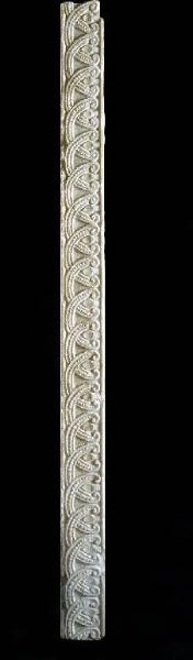 Frammento di architrave con decorazione, su entrambi i lati, articolata in archetti che si sovrappongono a destra e foglioline intermedie. Il lato destro è incompleto e presenta il taglio angolare per la saldatura con un altro segmento di trabeazione. Incompleto il lato sinistro.