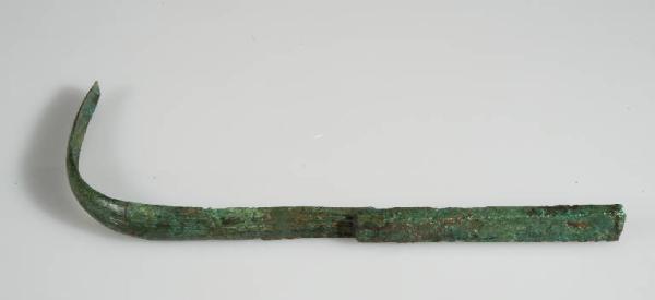 Strigile in bronzo con manico a listello, a sezione rettangolare