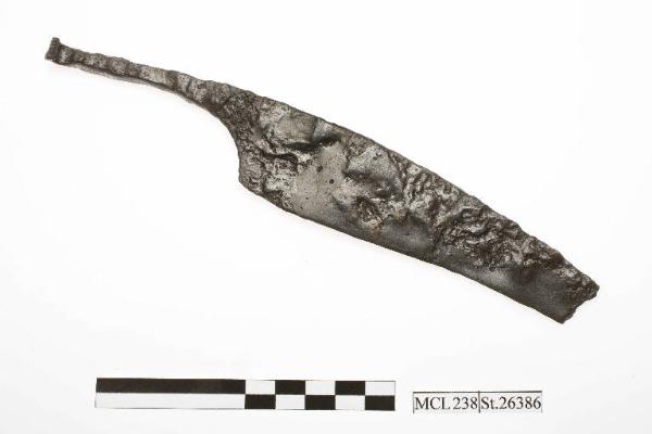 Lama in ferro a dorso incurvato, forse di cesoie.