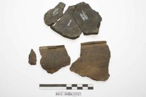 Frammenti di olletta; orlo estroflesso distinto, corpo presumibilmente troncoconico, fondo piano.