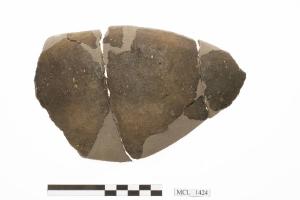 Frammento di orlo di coppa a vasca emisferica con orlo arrotondato lievemente rientrante.