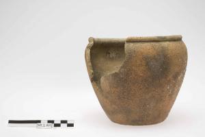 Olla con orlo arrotondato a sezione circolare distinto dalla spalla, corpo troncoconico, fondo piano.
