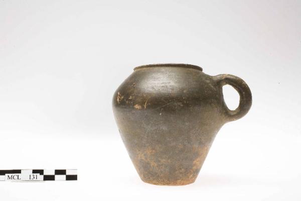 Boccale ovoide monoansato. Orlo arrotondato diritto, spalla arrotondata, fondo piatto. Ansa a bastoncello con attacco verticale.