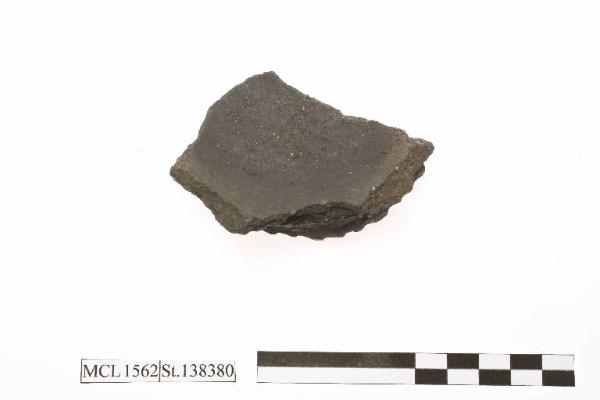 Fondo a disco leggermente convesso; decorazione a tacche lungo il bordo esterno.