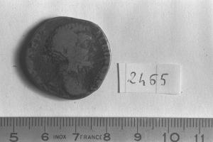 Peso ridotto.\nRecto: Testa nuda di Clodio Albino, a destra . Contorno di perline.\nVerso: Felicitas, drappeggiata, stante, di fronte, rivolta a sinistra, con caduceo nella destra e scettro verticale nella sinistra. Contorno di perline.