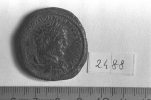 Recto: Busto laureato, drappeggiato e corazzato di Caracalla, a destra . Contorno di perline.\nVerso: Libertas, drappeggiata, stante, di fronte, rivolta a sinistra, con pileus nella destra e vindicta nella sinistra. Contorno di perline.