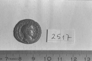 Recto: Busto laureato, drappeggiato e corazzato di Severo Alessandro, a destra , visto dalla fronte. Contorno di perline.\nVerso: Marte Ultore, con elmo e vesti militari, in corsa, a destra , con lancia trasversale puntata in alto nella destra e scudo imbracciato nella sinistra. Contorno di perline.