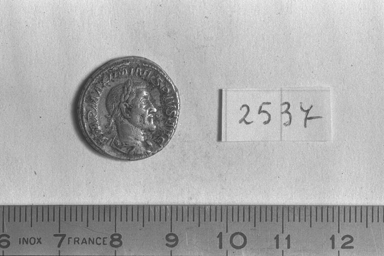 Recto: Busto laureato, barbato, drappeggiato e corazzato di Massimino il Trace, a destra . Contorno di perline.\nVerso: Providentia, diademata, drappeggiata, stante, di fronte, rivolta a sinistra, con bacchetta su globo nella destra e cornucopia nella sinistra; sul braccio sinistro, piega ricadente della veste. Contorno di perline.