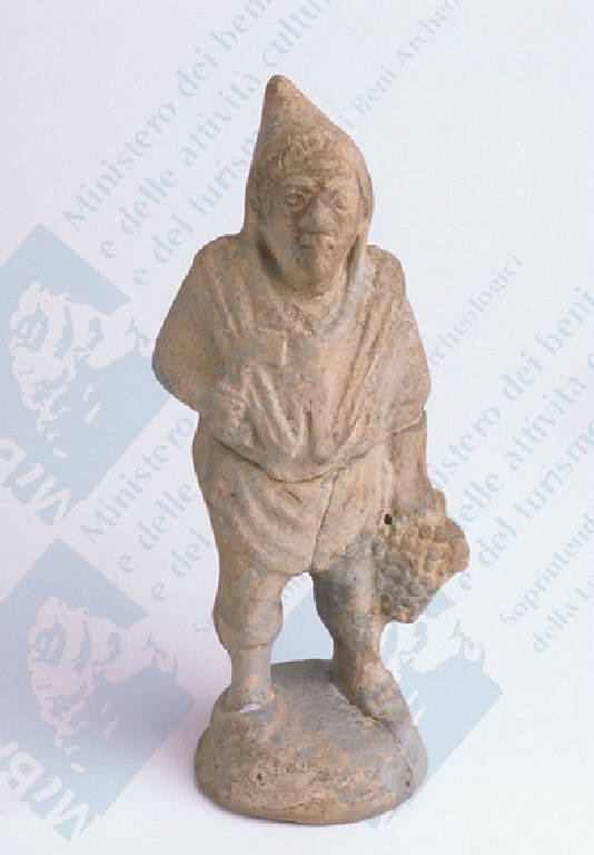 - NOTIZIE STORICO CRITICHE La statuetta fittile di vignaiolo proviene dal podere Panzarasa in località Marone, nel Comune di Gropello Cairoli. Fu rinvenuta nel 1978 in una tomba della necropoli di Gropello Cairoli, località che ha restituito molte testimonianze archeologiche. È databile nei primi decenni del I secolo d. C. Nei corredi funebri delle tombe di età romana della Lomellina, accanto ai manufatti d'uso corrente (piatti, bicchieri, coppe in ceramica, balsamari in vetro, ornamenti) si rinvengono spesso statuette fittili, simili a quella del vignaiolo. Il repertorio di statuine è molto vario, solitamente a figura intera, raro il busto, sono generalmente rappresentati personaggi di genere (uomo, donna, giovane, anziano, la coppia, la madre col figlio) intenti nelle occupazioni quotidiane (oltre al vignaiolo, la donna con l'olpe o col cesto) o figure divine o mitologiche (Venere, Minerva, Europa su toro, Eroti), ma anche animali, come la colomba sacra a Venere.\nQueste terrecotte figurate venivano realizzata a stampo, da matrice bivalve, con ritocchi a stecca. Le statuette sono peculiari della zona Lomellina, con limitata diffusione in Piemonte, nella zona del Verbano e nel Canton Ticino, in cui si riscontrano esemplari identici. Il ristretto ambito di diffusione fa presumere l'esistenza di centri di produzione locale, attivi tra l'età augustea e la metà del I sec. d.C.\nNon risulta sempre chiaro il significato di tali manufatti all'interno della tomba, sicuramente costituivano per il defunto un legame simbolico con il mondo terreno in riferimento alla vita quotidiana o ai culti praticat