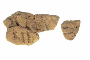 Parete a profilo leggermente curvilineo. Serie impressioni a unghiate, abbastanza profonde, disposte irregolarmente in file parallele.