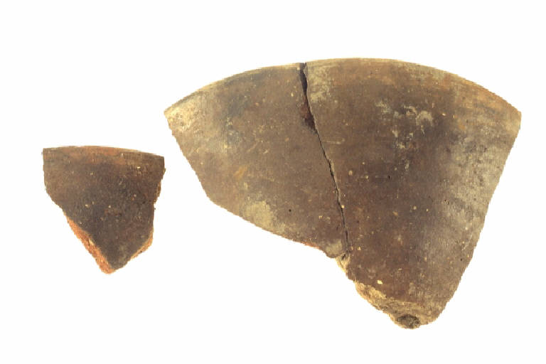 Orlo arrotondato, labbro indistinto, vasca troncoconica a profilo rettilineo, attacco del fondo.