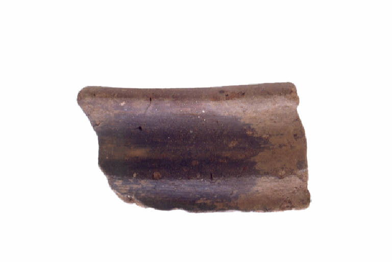Orlo appiattito, ingrossato verso l'esterno, labbro leggermente rientrante a profilo rettilineo. Cordone liscio a sezione triangolare sul labbro.