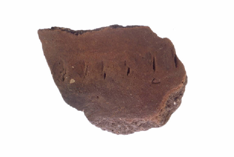 Parete a profilo leggermente curvilineo. Fila di impressioni digitali poco profonde sulla spalla.