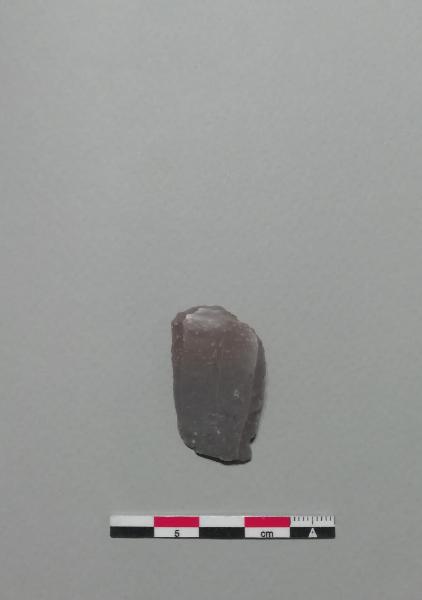 Grattatoio lungo frontale (G1) su lama in selce violetta. Ritocco semierto diretto nella parte distale a profilo arrotondato.