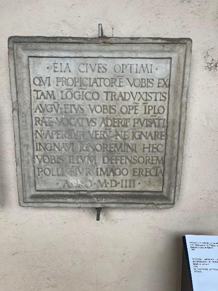 Iscrizione dedicatoria a S. Agostino in Cittadella