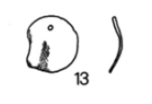 Pendente a disco.\nPrivo di decorazione, con foro, lungo il bordo, per la sospensione.\n