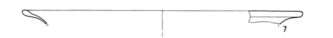 Orlo di grosse dimensioni, con bordo spesso e ingrossato verso l'interno, forse appartenuto ad un piatto o ad un'ampia coppa a corpo emisferico.