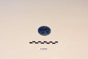 Piede a disco senza bordo distinto.\nPiede ricomposto da numerosi frammenti. Presenta un anello appiattito al bordo non distinto superiormente, all'interno del quale è del materia del vetroso bianco; il piede è piuttosto basso e conserva due costolature applicate (in origine dovevano essere tre) dello stesso colore, che dal gambo arrivano fino al margine.\nIl vetro presenta i segni della rotazione impressa durante la soffiatura e inferiormente la traccia del distacco del puntello.\nLo stelo è del tipo con chiusura a convessità superiore.