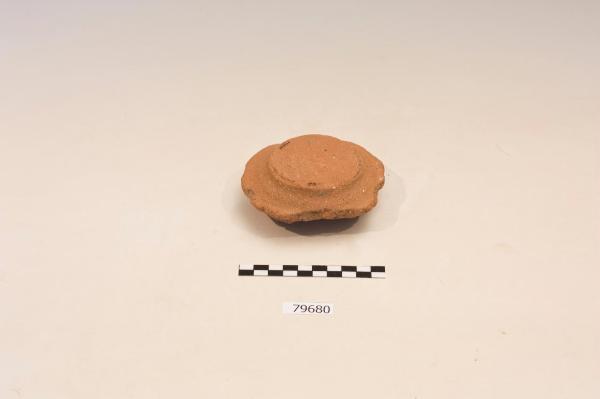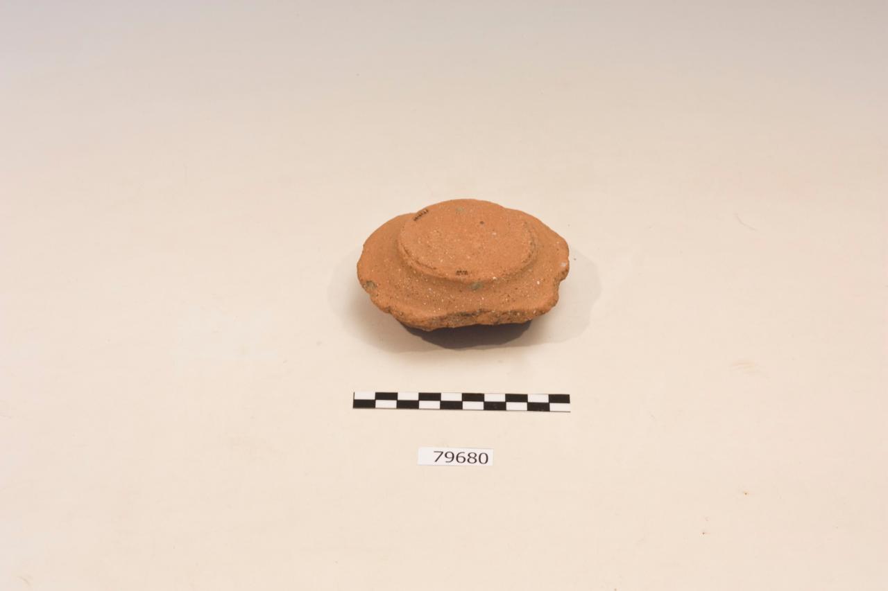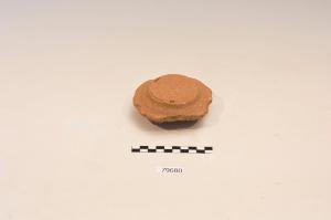 Esemplare (uno di tre) pressoché integro.\nHa corpo schiacciato, orlo liscio indistinto e arrotondato, listello pure arrotondato che doveva forse servire da presa, in quanto non ne presenta una propria. Questo particolare induce a ipotizzare una possibile doppia funzione per questo pezzo, cioè ciotola-coperchio.\nL'autrice dello studio ipotizza come preminente la funzione di coperchio, data la scarsa profondità del corpo e considerando il miglior trattamento della superficie esterna.\n