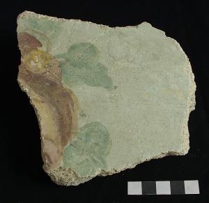 Frammento con testa di Dioniso dal quadro raffigurante il trionfo di Dioniso e Arianna che doveva campeggiare al centro di una delle pareti dell’anticamera del cubiculum detto Stanza di Arianna.\n