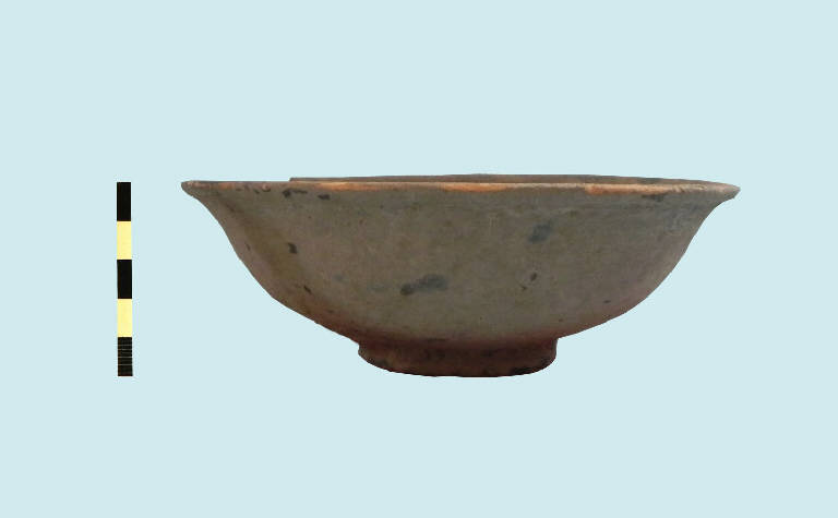 coppetta in vernice nera, labbro leggermente estroflesso, vasca ad andamento sinuoso, piede cilindrico ad anello.