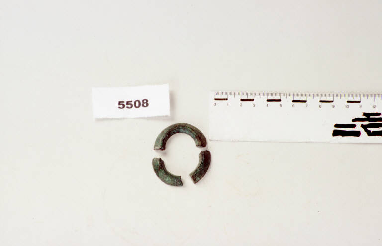 Grosso anello a sezione triangolare in bronzo.