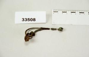 Fibula ad arco serpeggiante, con arco a nastro e disco fermapieghe.