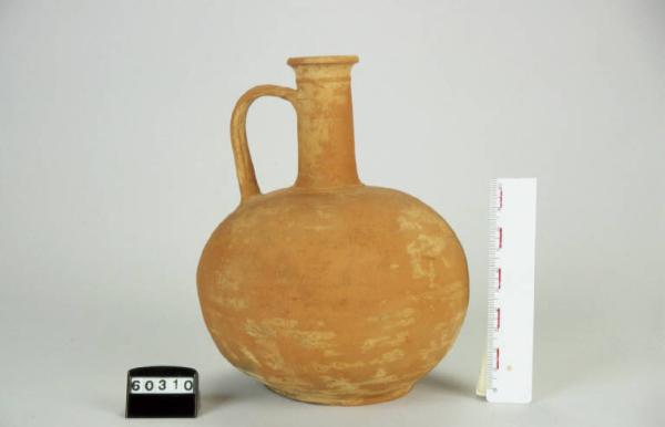 Olpe globulare a collarino, orlo arrotondato, labbro ingrossato, piede a disco.