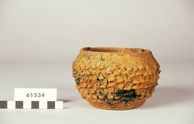 Olletta di forma troncoconica, orlo leggermente rivolto verso l'interno, fondo piano, apoda.