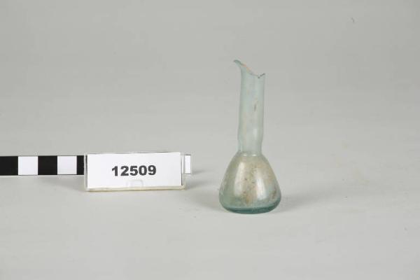 Balsamario con orlo estroflesso, collo cilindrico lungo e fondo concavo.