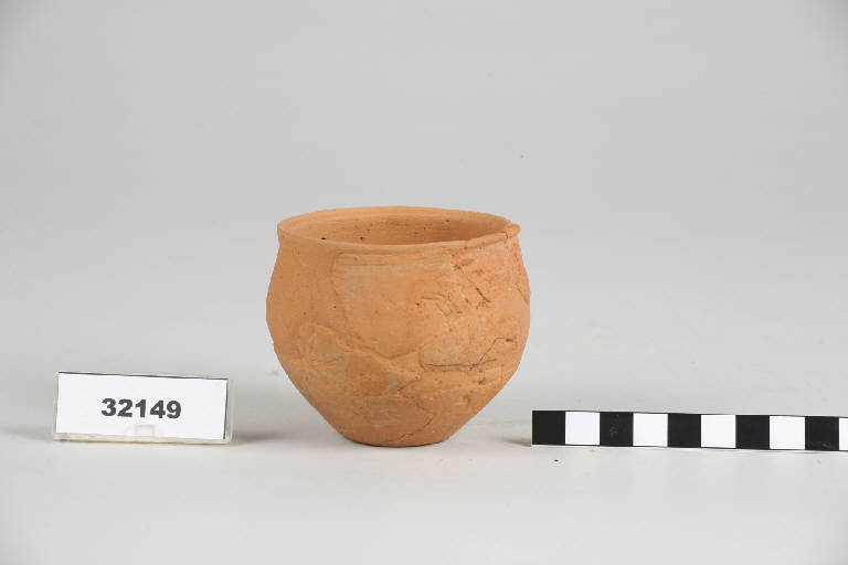 Olletta globulare con orlo leggermente estroflesso e fondo piano.