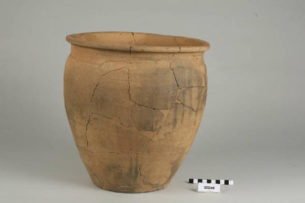 Urna ovoide con orlo piatto leggermente estroflesso e fondo piano.