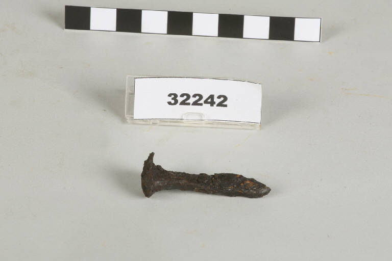 Chiodo in ferro con asta a sezione quadrangolare.