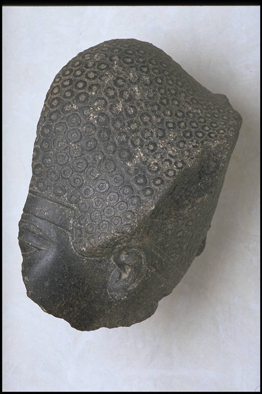 - NOTIZIE STORICO CRITICHE L'opera fa parte della raccolta egizia Giuseppe Acerbi (Castelgoffredo 1773 - 1846), costituita da reperti archeologici selezionati dall'erudito e scienziato naturalista mantovano - nominato nel 1826 Console Generale d'Austria in Egitto - tra Alessandria e Assuan, nella seconda metà degli anni Venti del XIX secolo. Entrata a far parte ufficialmente delle collezioni comunali di Mantova con il lascito di Agostino Zanelli, nipote ed unico erede dell'Acerbi, nel 1876, la raccolta ha conosciuto differenti collocazioni nel corso del tempo, fino all'attuale.\nIl copricapo della scultura - forse un elmo da guerra - suggerisce l'identificazione della stessa con un re; le sue caratteristiche sono affini ad altre sculture riferibili alla metà della XVIII dinastia, in particolare al sovrano Amenofi III. Il lobo forato indica l'uso di orecchini.