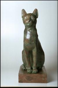 - NOTIZIE STORICO CRITICHE L'opera fa parte della raccolta egizia Giuseppe Acerbi (Castelgoffredo 1773 - 1846), costituita da reperti archeologici selezionati dall'erudito e scienziato naturalista mantovano - nominato nel 1826 Console Generale d'Austria in Egitto - tra Alessandria e Assuan, nella seconda metà degli anni Venti del XIX secolo. Entrata a far parte ufficialmente delle collezioni comunali di Mantova con il lascito di Agostino Zanelli, nipote ed unico erede dell'Acerbi, nel 1876, la raccolta ha conosciuto differenti collocazioni nel corso del tempo, fino all'attuale.\nL'animale, sacro alla dea Bastet, è rappresentato seduto con la coda ravvolta alla coscia destra. Molto curata la resa della muscolatura e dell'anatomia nel suo complesso, tale da distinguere l'opera dagli esemplari noti di analogo soggetto. A differenza di questi, il gatto della raccolta Acerbi non reca orecchino al lobo sinistro ed egida sul petto. Tracce di collana composta da cinque file di motivi vegetali, incisa sotto il collo.