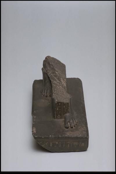 - NOTIZIE STORICO CRITICHE L'opera fa parte della raccolta egizia Giuseppe Acerbi (Castelgoffredo 1773 - 1846), costituita da reperti archeologici selezionati dall'erudito e scienziato naturalista mantovano - nominato nel 1826 Console Generale d'Austria in Egitto - tra Alessandria e Assuan, nella seconda metà degli anni Venti del XIX secolo. Entrata a far parte ufficialmente delle collezioni comunali di Mantova con il lascito di Agostino Zanelli, nipote ed unico erede dell'Acerbi, nel 1876, la raccolta ha conosciuto differenti collocazioni nel corso del tempo, fino all'attuale.\nSi tratta della base a parallelepipedo con piedi di una statua stante che rappresenta un uomo nell'atto di offrire agli dei un naos: la figura - un sacerdote - doveva presentare un modellato particolarmente curato, come testimoniano le dita dei piedi superstiti. Le formule d'offerta incise sullo zoccolo della base e sui frammenti di pilastri anteriore e dorsale presentano particolarità grafiche e d'impostazione tipicamente saitiche.