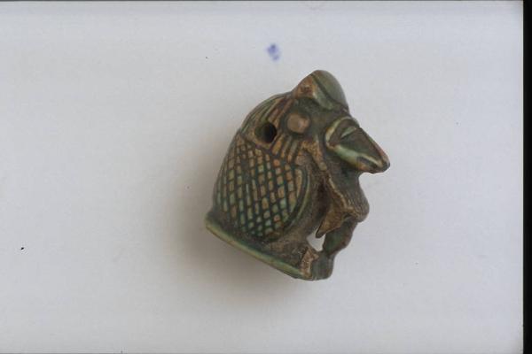 - NOTIZIE STORICO CRITICHE L'opera fa parte della raccolta egizia Giuseppe Acerbi (Castelgoffredo 1773 - 1846), costituita da reperti archeologici selezionati dall'erudito e scienziato naturalista mantovano - nominato nel 1826 Console Generale d'Austria in Egitto - tra Alessandria e Assuan, nella seconda metà degli anni Venti del XIX secolo. Entrata a far parte ufficialmente delle collezioni comunali di Mantova con il lascito di Agostino Zanelli, nipote ed unico erede dell'Acerbi, nel 1876, la raccolta ha conosciuto differenti collocazioni nel corso del tempo, fino all'attuale.\nL'amuleto rientra in un cospicuo gruppo di oggetti analoghi per tipologia e funzione (apotropaica/magica) e, tra questi, nella serie di 22 amuleti raffiguranti animali, la cui venerazione interessa l'Egitto dal periodo storico fino all'Età Romana. Il babbuino, sacro al dio Thot, é rappresentato accovacciato con le mani sulle ginocchia; il pelame é reso da un reticolo di linee incise; sulla testa è posto il crescente lunare.