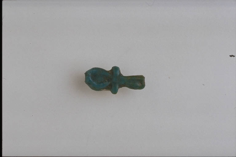 - NOTIZIE STORICO CRITICHE L'opera fa parte della raccolta egizia Giuseppe Acerbi (Castelgoffredo 1773 - 1846), costituita da reperti archeologici selezionati dall'erudito e scienziato naturalista mantovano - nominato nel 1826 Console Generale d'Austria in Egitto - tra Alessandria e Assuan, nella seconda metà degli anni Venti del XIX secolo. Entrata a far parte ufficialmente delle collezioni comunali di Mantova con il lascito di Agostino Zanelli, nipote ed unico erede dell'Acerbi, nel 1876, la raccolta ha conosciuto differenti collocazioni nel corso del tempo, fino all'attuale.\nL'amuleto rientra in un cospicuo gruppo di oggetti analoghi per tipologia e funzione (apotropaica/magica) e, tra questi, nella serie di 36 amuleti raffiguranti simboli. Il nodo ("ankh") - probabilmente rappresentante il legaccio del sandalo maschile - é simbolo di vita eterna, diffuso dalla XIX din. al Periodo Tolemaico. Amuleto lavorato a stampo in modo sommario, lasciando piena l'ansa superiore.