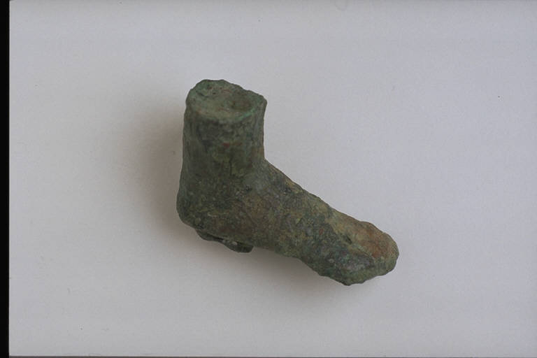 - NOTIZIE STORICO CRITICHE L'opera fa parte della raccolta egizia Giuseppe Acerbi (Castelgoffredo 1773 - 1846), costituita da reperti archeologici selezionati dall'erudito e scienziato naturalista mantovano - nominato nel 1826 Console Generale d'Austria in Egitto - tra Alessandria e Assuan, nella seconda metà degli anni Venti del XIX secolo. Entrata a far parte ufficialmente delle collezioni comunali di Mantova con il lascito di Agostino Zanelli, nipote ed unico erede dell'Acerbi, nel 1876, la raccolta ha conosciuto differenti collocazioni nel corso del tempo, fino all'attuale.\nLa piccola scultura in bronzo rientra in un gruppo di opere e oggetti di età ellenistica: si tratta di un piede di figura maschile, probabilmente Arpocrate o Serapide. L'oggetto è modellato solo nel suo volume, non conservando più alcun elemento descrittivo.