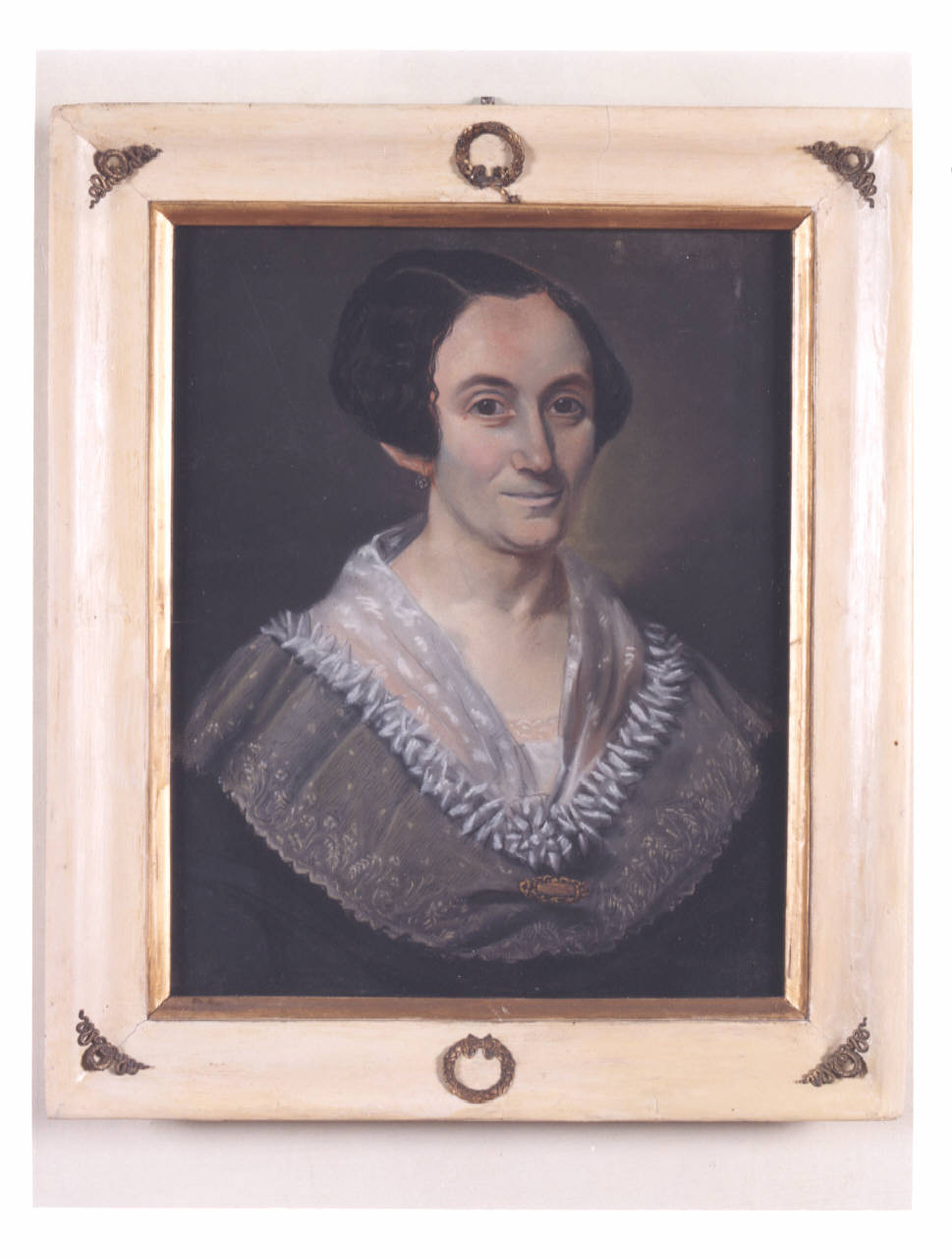 - NOTIZIE STORICO CRITICHE Il ritratto raffigura Marianna Richini, madre di Camillo Bozzolo. L'autore si mostra piuttosto accurato, come evidenziano alcuni particolari quali l'organza ricamata e la piccola spilla; nel volto emerge una preparazione grigiastra che rende piuttosto duro l'ovale della donna. Protetto da una coeva cornice Impero, venne donato alla Villa in epoca recente dalla famiglia Bozzolo. In origine era collocato nella casa di Torino.