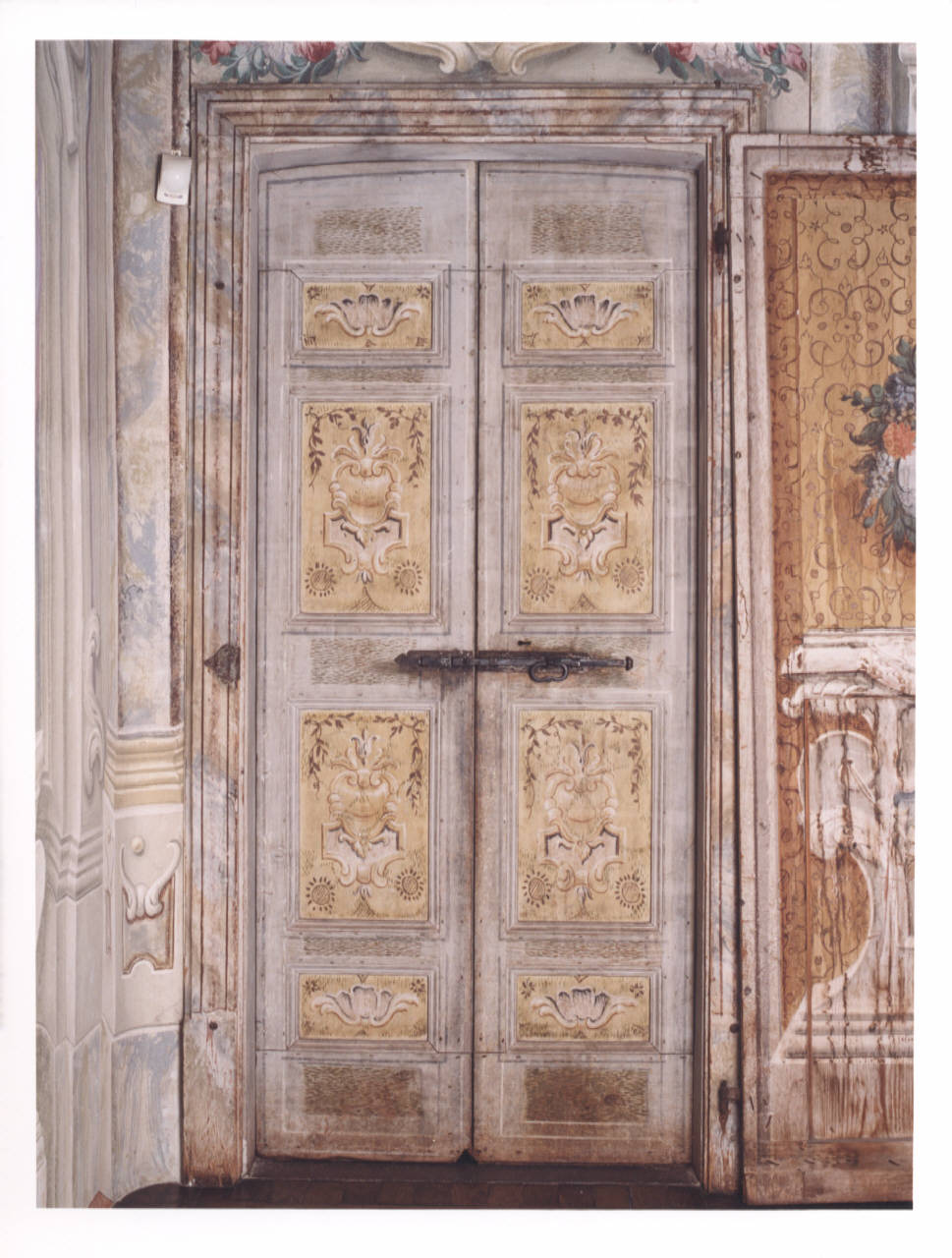 - NOTIZIE STORICO CRITICHE La porta ad anta unica racchiude una seconda porta a due battenti, con specchiature sui due lati.