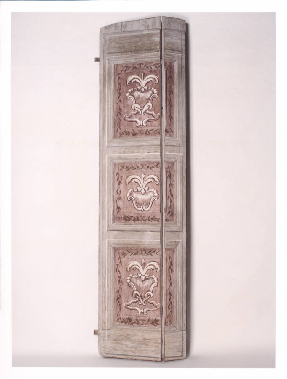 Scuri in legno dipinti a tempera rosa.