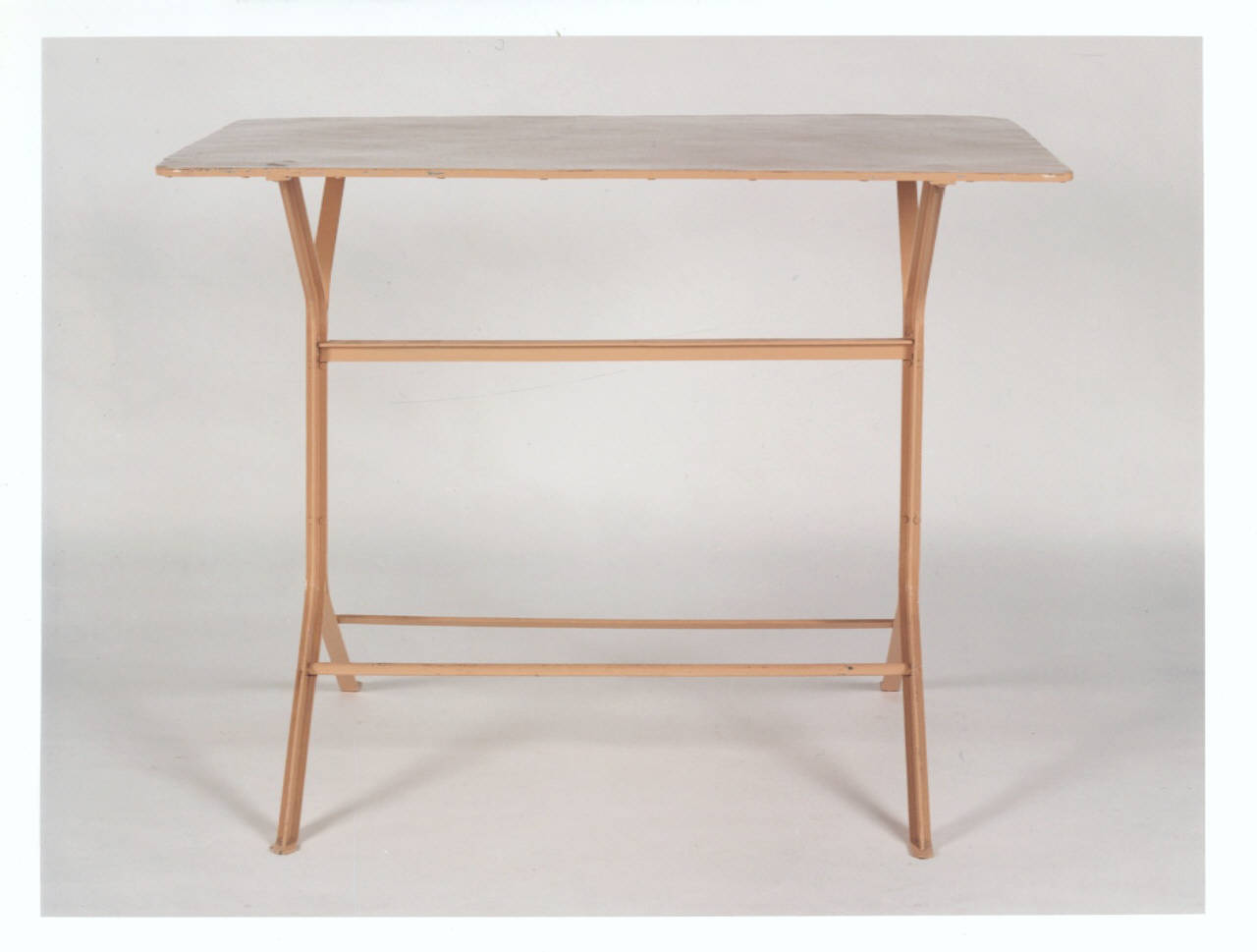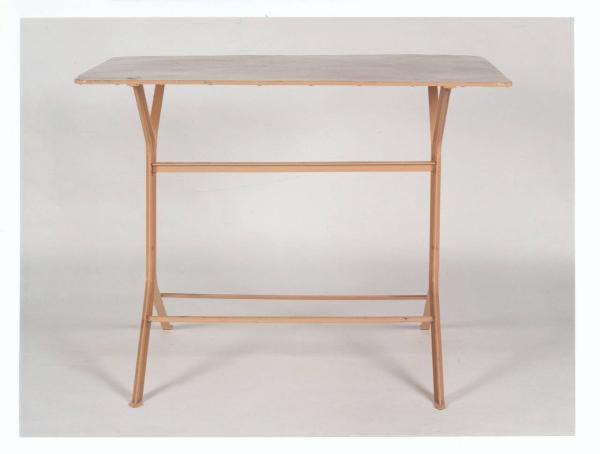Piano rettangolare reclinabile, sostegni raccordati da traverse; in ferro verniciato di rosa
