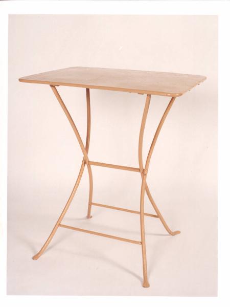 Piano rettangolare reclinabile, sostegni raccordati da traverse; in ferro verniciato di rosa