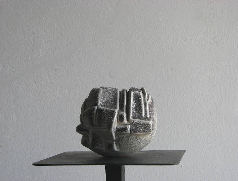 - NOTIZIE STORICO CRITICHE La forma della sfera comincia a divenire dominante nell'arte di Zauli a partire all'incirca dal 1968, quando lo scultore ha ormai abbandonato gli esordi geometrizzanti ed è appena entrato in quella che lui stesso definisce la terza fase della sua ricerca, "improntata su modulazioni sensibili e molto vicine alla natura" (Vivaldi C. 1973). \nLe sfere di Zauli infatti non sono tanto assimilabili all'archetipo geometrico quanto piuttosto alle forme naturali (frutti caduti dall'albero, sassi, zolle), laddove l'archetipo è stato sottoposto a pressioni e spinte deformanti, esterne ed interne alla materia.\n"Tutto in Zauli parte dalla zolla di terra" scrive Davide Lajolo, unito allo scultore da un'amicizia che trova le sue motivazioni anche nelle comuni origini contadine e nell'amore per la campagna. "Proprio la terra sulla quale si cammina, quella che senti respirare sotto l'erba quando fai sosta da ragazzo dopo una corsa sfrenata, quella che tuo padre squarciava con l'aratro lasciando le zolle splendere al sole o intridersi d'acqua nera e nebbia grigia negli inverni d'ombra e di gelo" (Lajolo D. 1976).\nAnche la scelta del grès, il materiale utilizzato da Zauli in questa come nella maggior parte delle sue sculture, è in sintonia con questa poetica.\nIl grès è un materiale povero, che preclude il gioco di effetti cromatici tipico della tradizionale maiolica faentina. Esso limita la gamma di colori a quelli compresi tra il nero e il bianco, consentendo dunque a Zauli di utilizzare esclusivamente le pur ricche sfumature del grigio (Vivaldi C. 1973). \nI limiti relativi alla gamma cromatica si risolvono però a favore di una maggiore attenzione al rapporto tra forma e materia, oggetto principale della ricerca dell'artista.