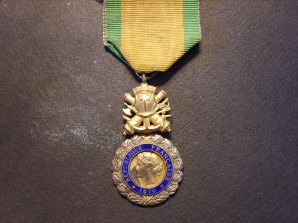Medaglia appesa ad un nastro di seta gialla e verde.