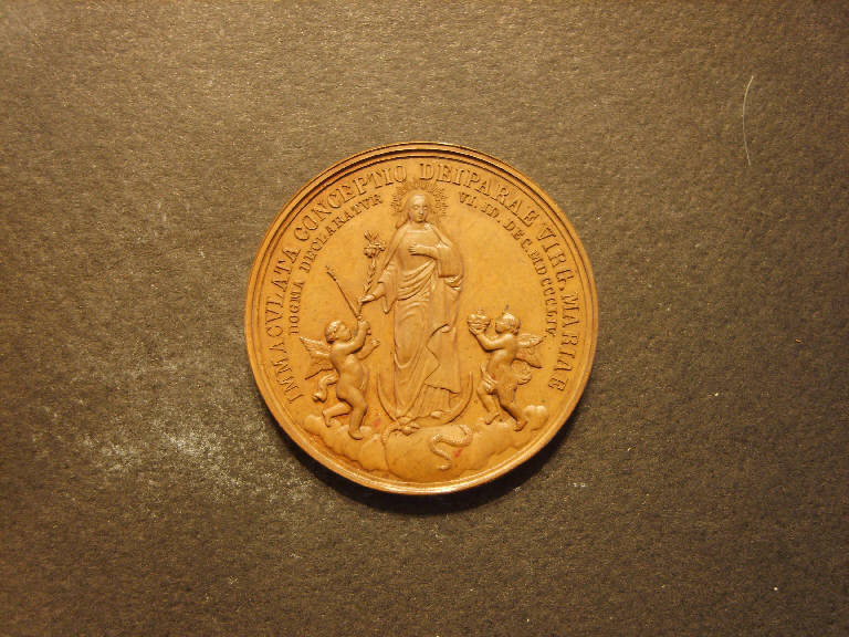 Medaglia commemorativa dell'istituzione del dogma dell'Immacolata concezione. Madonna immacolata/ Ritratto di Pio IX